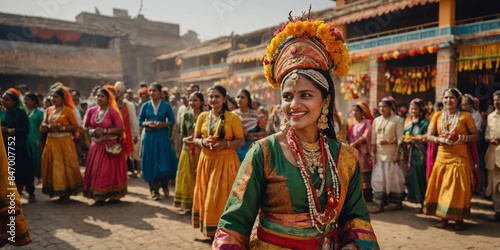 A dancer showcasing a colorful traditional Indian costume during a cultural festival
