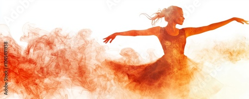 A dancer twirls gracefully, surrounded by colorful swirling smoke, creating a vibrant and dynamic atmosphere.