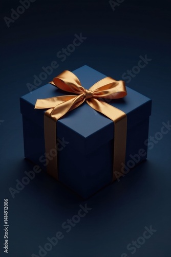 A Dark Blue Gift Box with a Golden Ribbon, Elegantly Wrapped for a Special Occasion