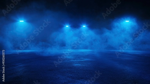 A dark empty street, dark blue background, an empty dark scene, neon light, spotlights The asphalt floor and studio room with smoke float up the interior texture. night view , ai