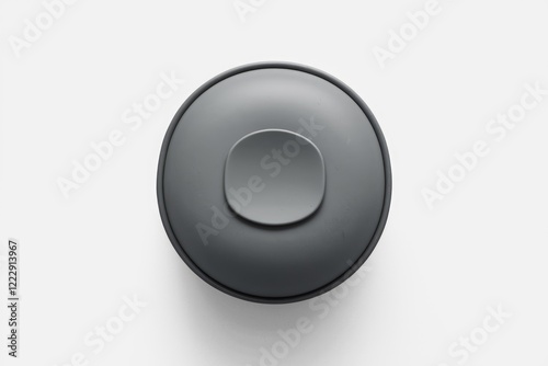 A dark gray, round lidded container with a small, circular handle on top.