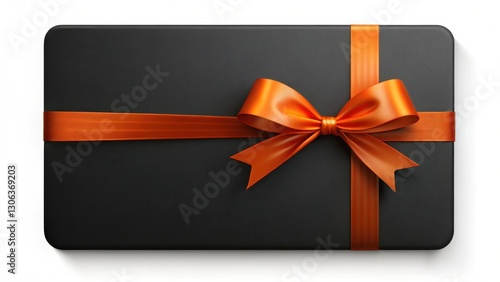 A Dark Rectangular Gift Box Adorned with a Vibrant Orange Ribbon and Bow