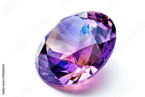 A dazzling amethyst gemstone shines brilliantly in soft light, showcasing intricate facets and rich purple hues, perfect for jewelry design isolated on transparent background