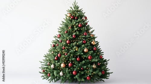 A decorated Christmas tree adorned with ornaments and lights, symbolizing festive celebration.