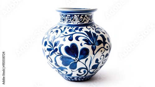 A decorative blue and white ceramic vase featuring floral patterns, ideal for home decor.