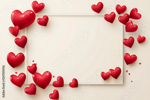 A decorative frame filled with red hearts, ideal for love-themed designs or messages.