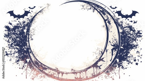 A decorative graphic featuring a crescent moon and bats, ideal for Halloween themes.