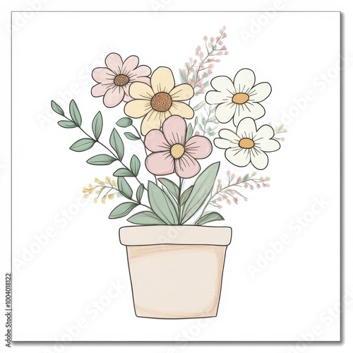 A decorative illustration of flowers in a pot, showcasing a soft and artistic design.