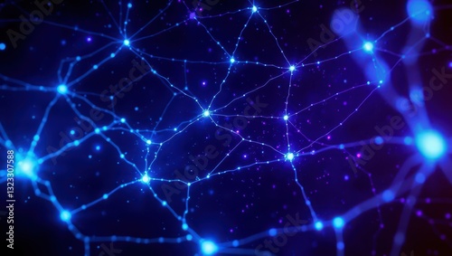 A deep space scene featuring a web of interconnected energy grids, pulsating with mysterious dark blue and purple light. The particles move fluidly, forming intricate patterns that resemble the unseen