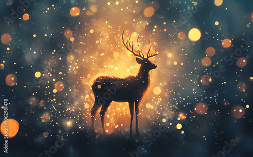 A deer stands majestically against a backdrop of blurred festive lights. Generative AI.