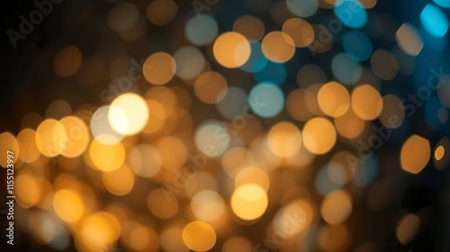 A de-focused abstract background featuring shimmering glitter lights in blue, gold, and black hues.