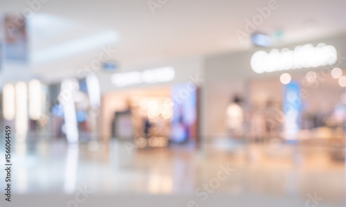 A defocused shopping mall background in a department store with an abstract blur and bokeh effect.