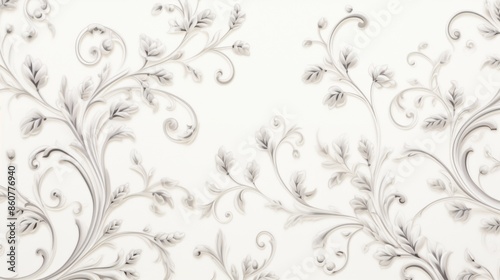 A delicate and intricate floral embossed design set against a white background, featuring beautifully detailed leaves and tendrils, creating a sophisticated and serene look.