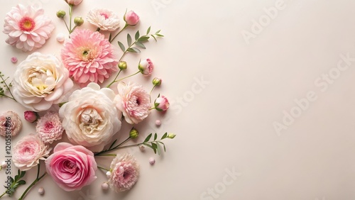 A Delicate Arrangement of Pastel Pink and White Blossoms on a Soft Beige Background, Ideal for Invitations, Greeting Cards, or Decorative Purposes
