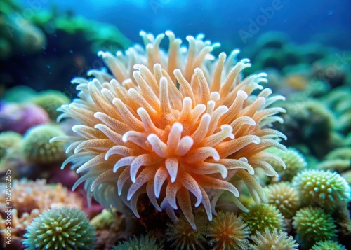 A delicate coral polyp stretches its soft tentacles into the ocean currents