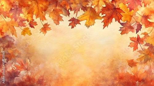 A delicate illustration of autumn maple leaves in warm shades of orange, red, and yellow, scattered across the top and sides of the frame.