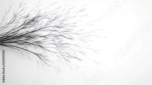 A delicate, monochromatic branch with fine twigs, creating a minimalist aesthetic against a blank background.