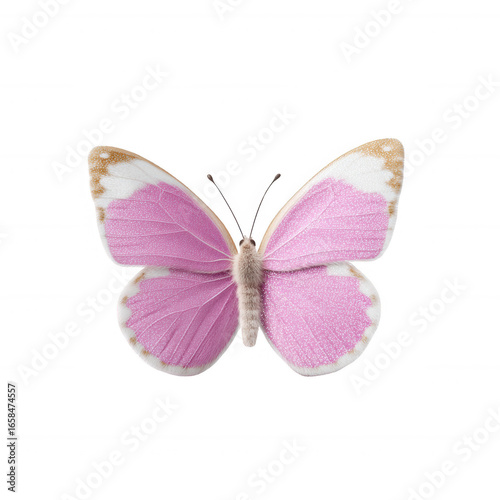 A delicate pink butterfly resting against a white isolated background, showcasing its intricate wing patterns and graceful form, perfect for nature-inspired designs.