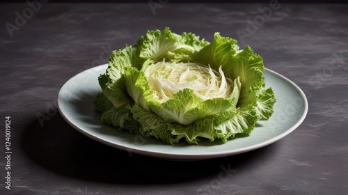 A Delicate Presentation of Freshly Prepared Napa Cabbage on a Pale Green Plate