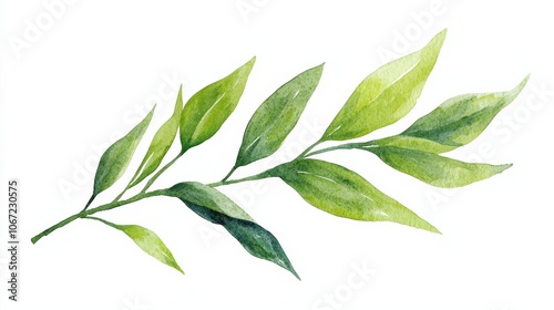 A delicate watercolor illustration of a green leaf branch, perfect for nature-themed designs, eco-friendly projects, and botanical art.