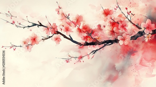A delicate watercolor painting of cherry blossom branches, evoking beauty and tranquility.