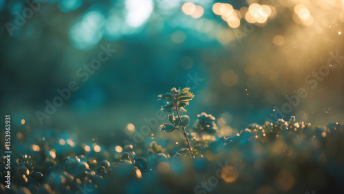 A delicate young plant growing in a field, illuminated by soft golden sunlight. A beautiful representation of nature, growth, and new beginnings