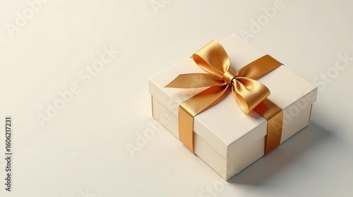 A delicately wrapped gift box with a golden ribbon bow, ready for a special occasion.