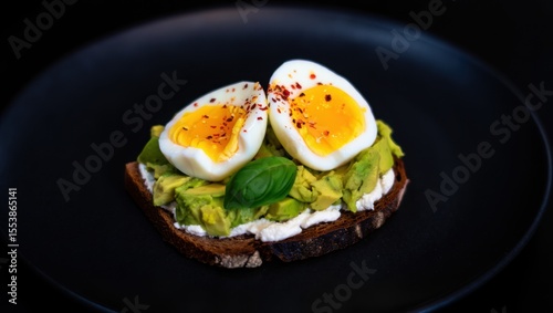 A Delicious Avocado Toast Topped with Soft-Boiled Eggs and a Hint of Spices for a Perfect Breakfast Delight
