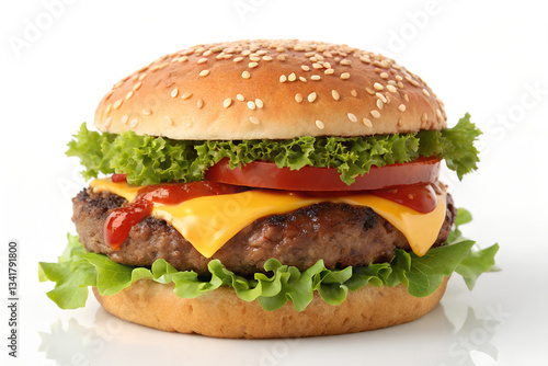 A Delicious Hamburger Featuring a Sesame Seed Bun
