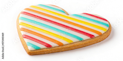 A Delicious Heart-Shaped Cookie with Striped Glaze Isolated for Sweet Treats