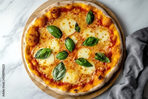 A delicious margherita pizza, baked to perfection. Fresh basil, melted mozzarella, and tomato sauce