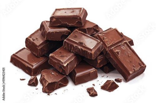 A Delicious Pile of Rich Milk Chocolate Bars Stacked Artistically on a White Background Ready for Delicious Desserts or Sweet Treats