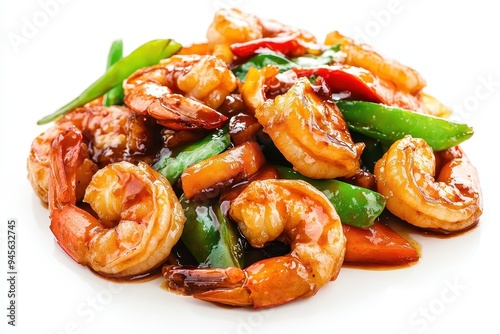 A delicious stir-fried shrimp dish with vegetables and sauce.
