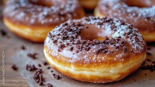 A delicious-looking doughnut with chocolate sprinkles, perfect for a snack or dessert