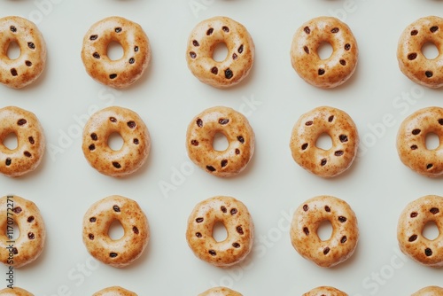 A delightful arrangement of freshly baked bagels with chocolate chips, showcasing a warm, golden-brown hue.