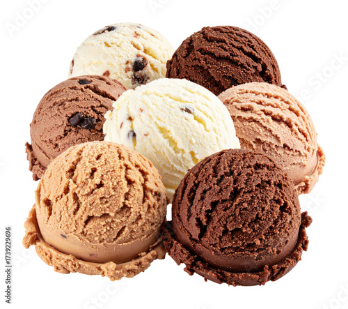 A Delightful Array of Ice Cream Scoops in Various Flavors, Isolated on Transparent Background