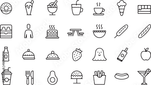A Delightful Assortment of Food and Drink Icons Representing Culinary Variety and Refreshments for All Occasions and Tastes
