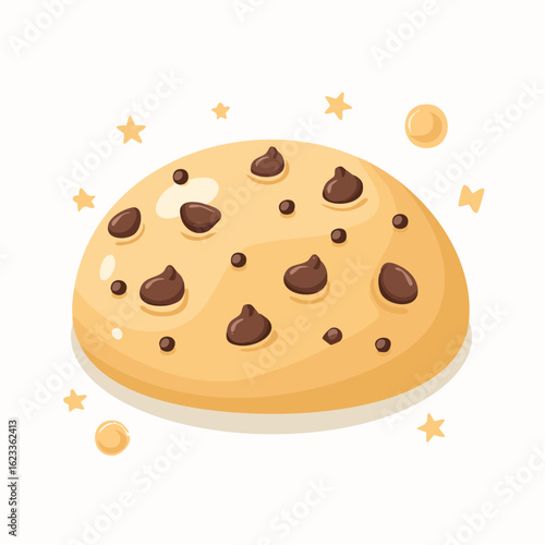 A delightful cartoon illustration of a freshly baked chocolate chip cookie with sparkling details. A yummy and sweet dessert graphic.