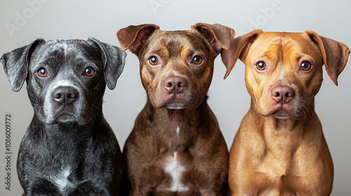 A delightful close-up of a group of dogs capturing their happy expressions and strong bond, showcasing the joy of companionship in a beautiful outdoor setting.
