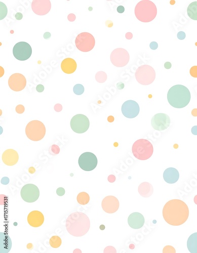 A delightful pattern of pastel-colored circles scattered across a white background, creating a cheerful and airy design.
