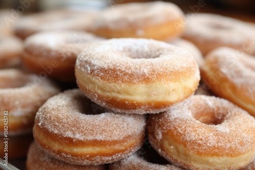 A delightful pile of freshly baked cinnamon sugar doughnuts ready to be enjoyed, perfect for breakfast or a sweet snack on a cozy morning