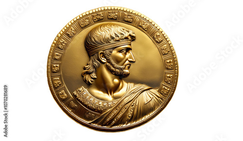 A denarius or talent. Ancient gold coin with the image of the emperor.