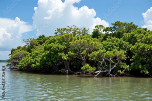 a dense mangrove forest protecting a coastline from storms and providing critical habitat for wildlife.