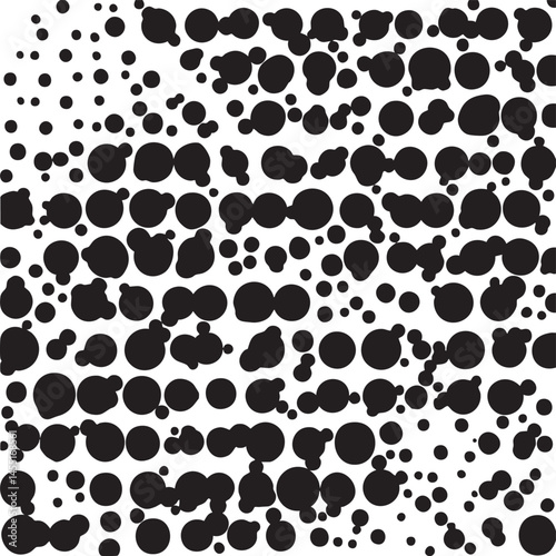 A densely patterned arrangement of overlapping black and white circular shapes.