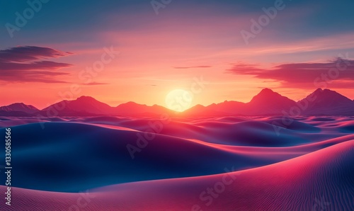 a desert landscape with colorful sky at sunset.