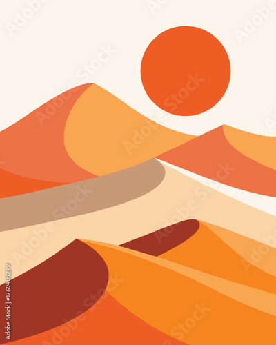 A desert landscape with sand dunes and a bright sun, showcasing the beauty of arid environments