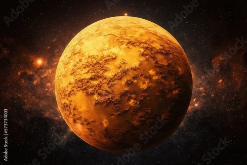 A desolate, orange hued, terrestrial planet in space. Generative AI
