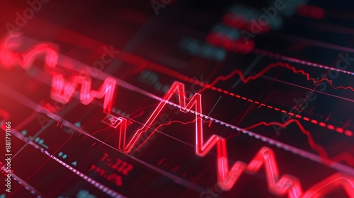 A detailed 3D illustration of a falling stock market chart in red, showing declining financial trends and market volatility. Abstract blur background.