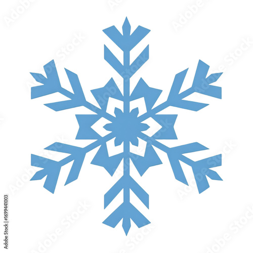 A detailed blue snowflake design symbolizing winter and cold weather, perfect for seasonal decorations, clothing, or digital graphics.