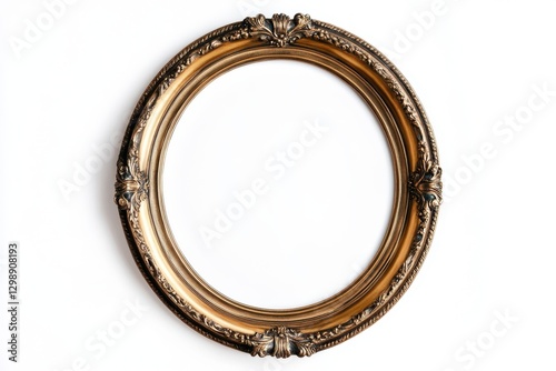 A Detailed Circular Gold Colored Picture Frame on White